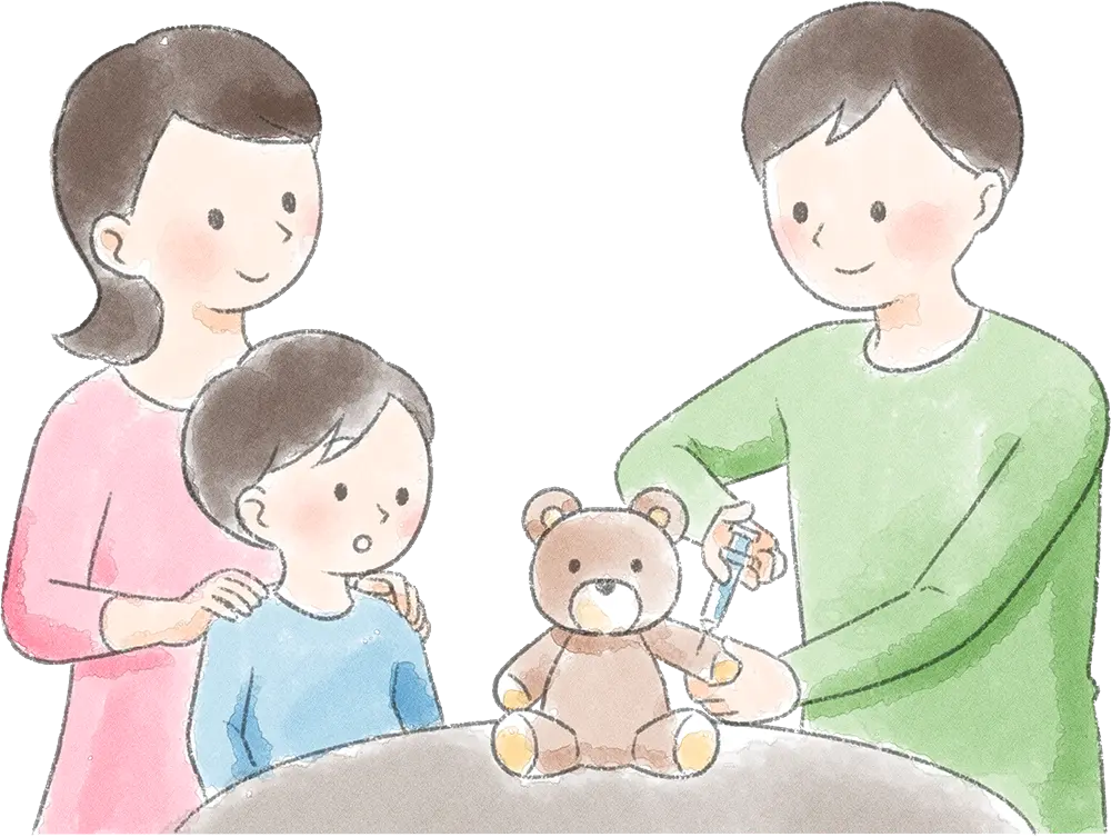 お子さん自身で、おもちゃや人形に注射をする体験をしてもらうのもよいでしょう。